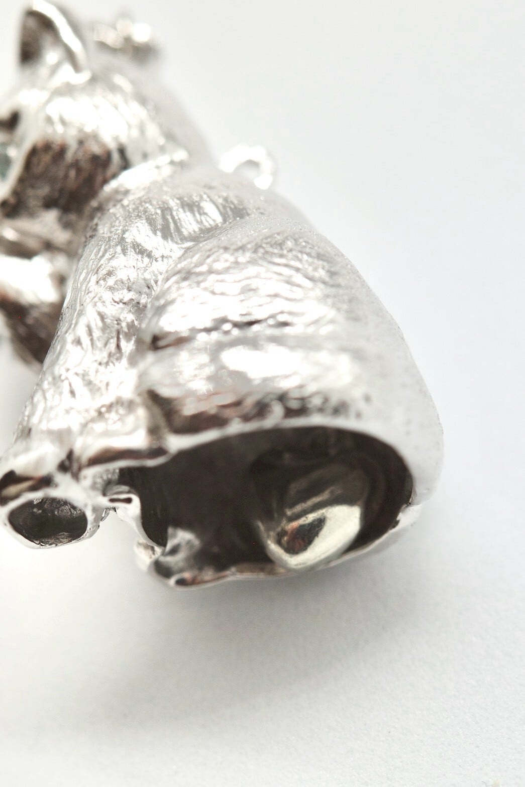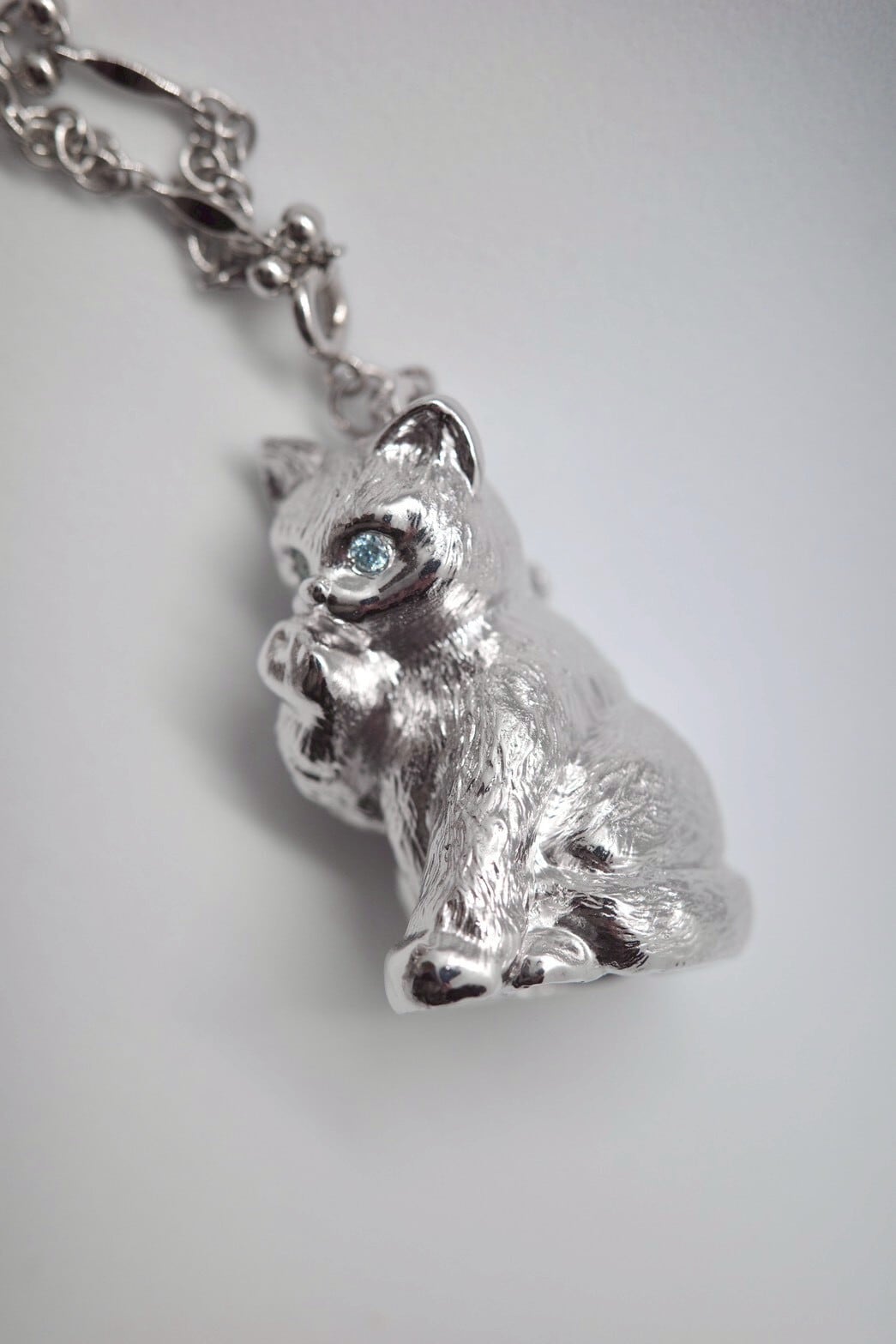 アンティークのシルバーチャームではなかなか見つからない猫モチーフをクリスタルのブルーアイでモダンに仕上げました。