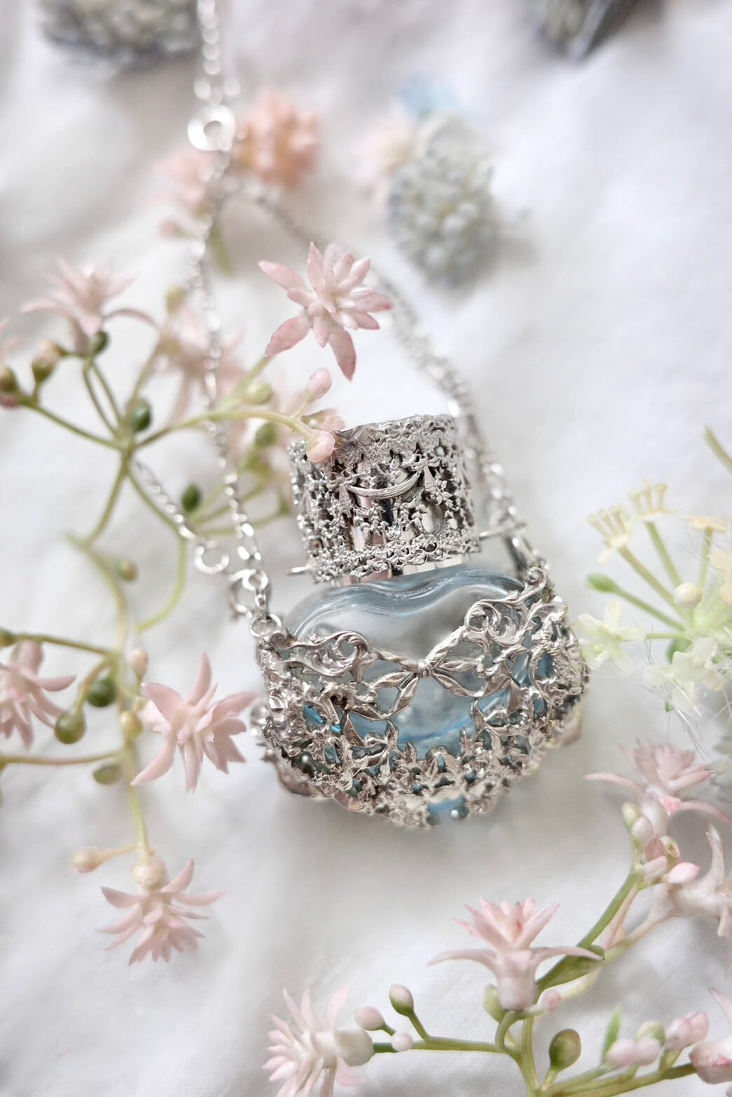 アンティークのシルバーチャームでは見つからない香水瓶をモチーフにしました。