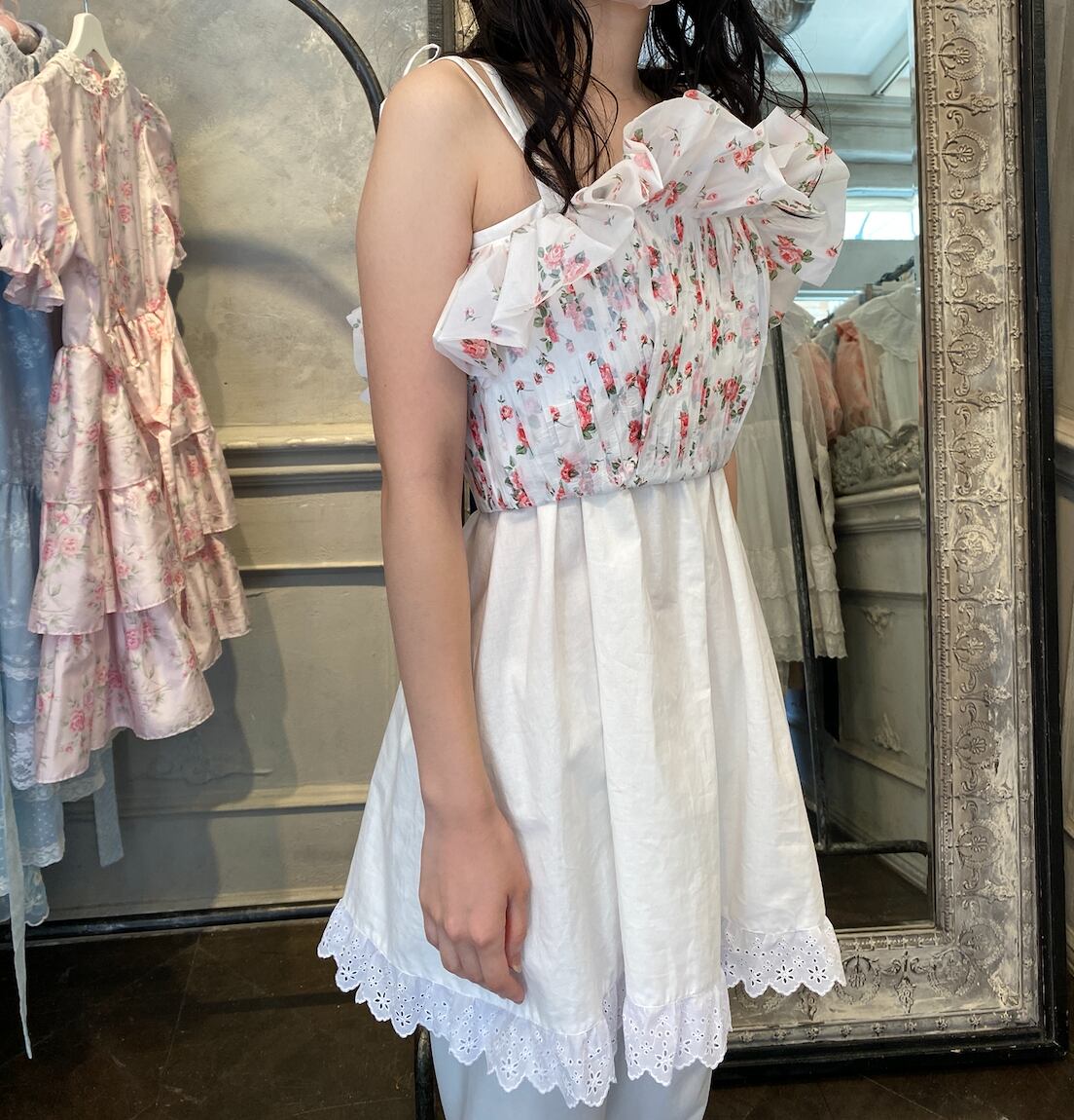 フリル部分に裏地はない為ひっかけると破れることがございます。
