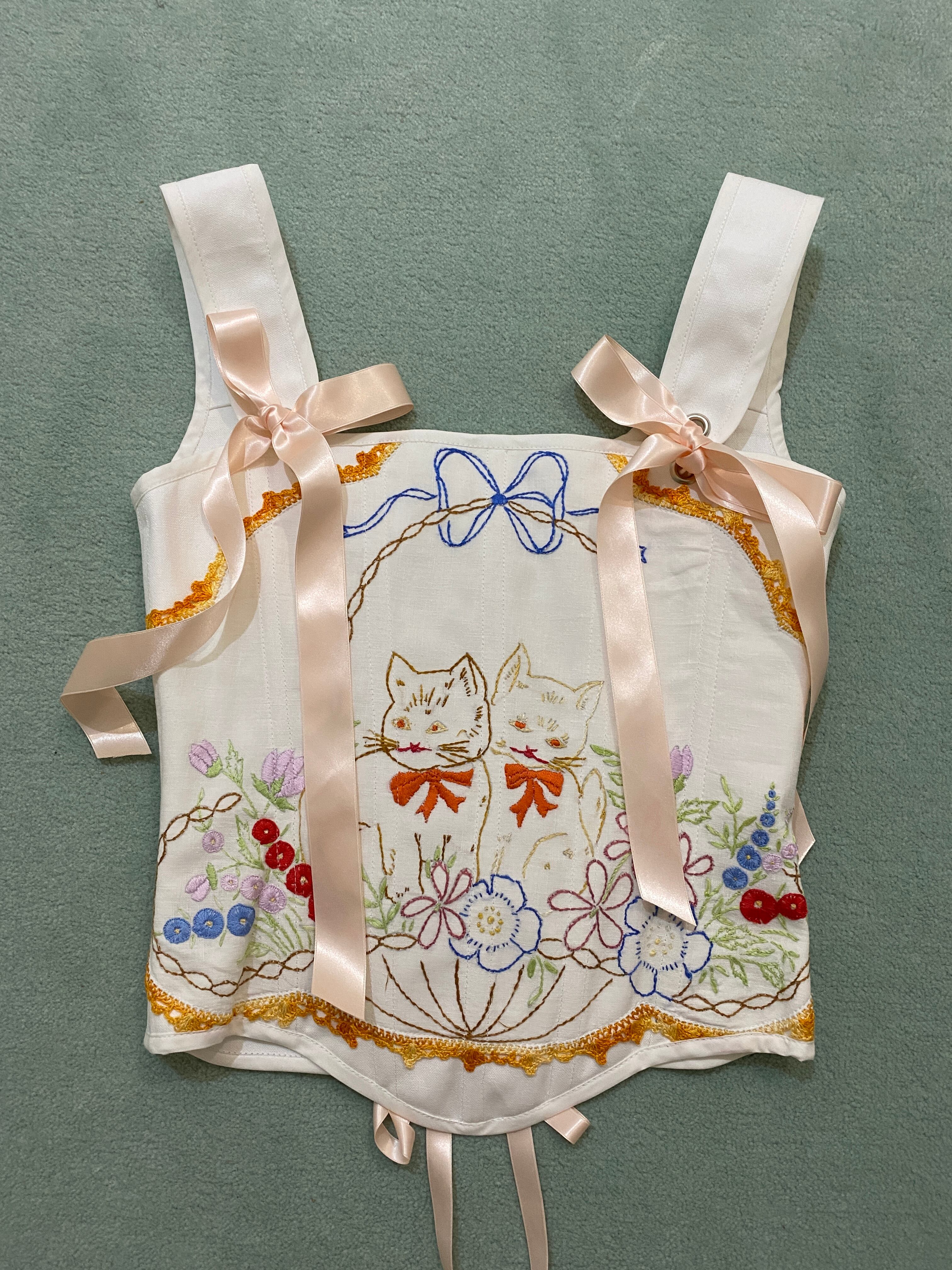 Vintage Upcycled Corset one-off Kitten floral bow
