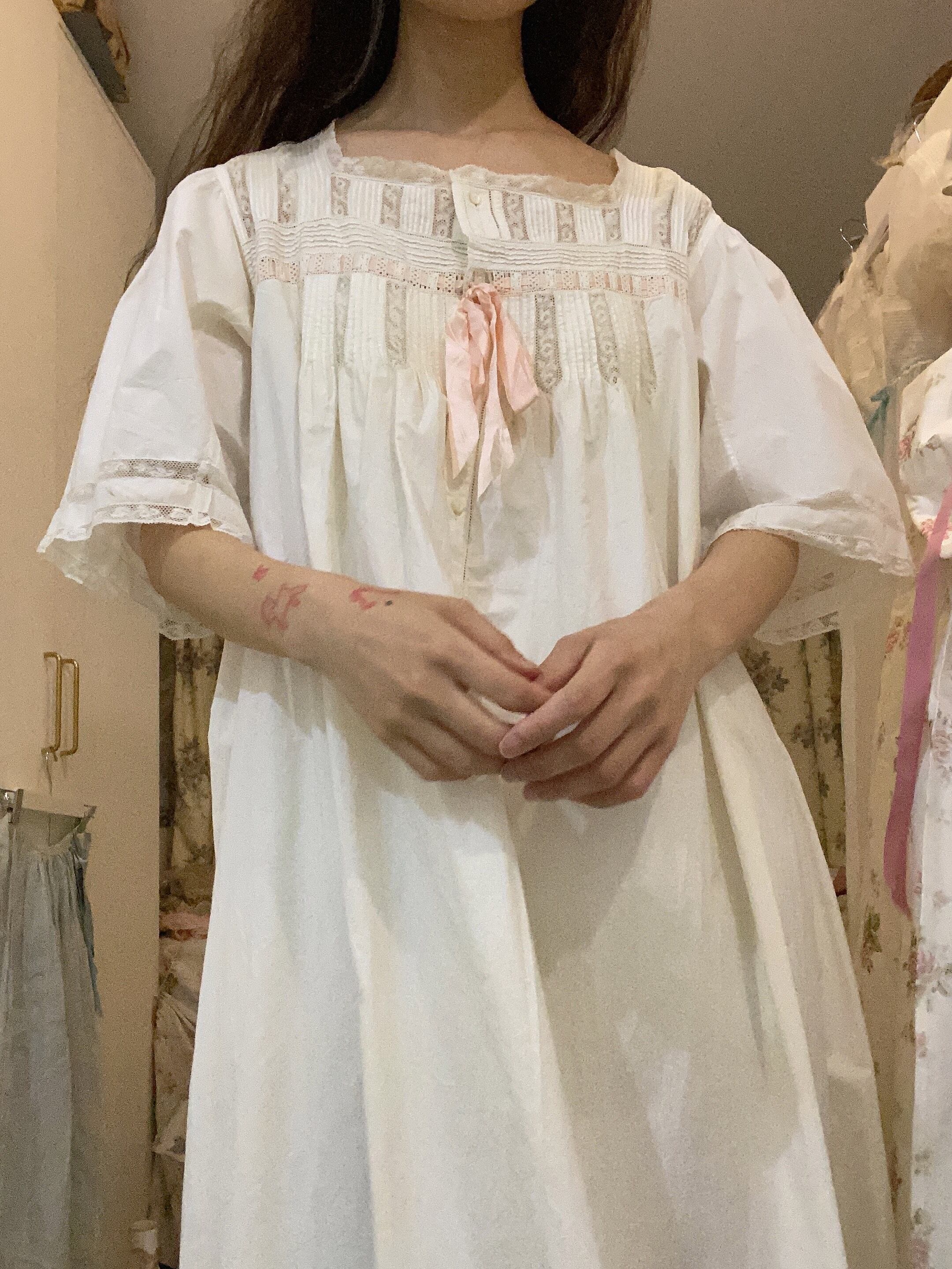 1910s antique nightdress with pink bow